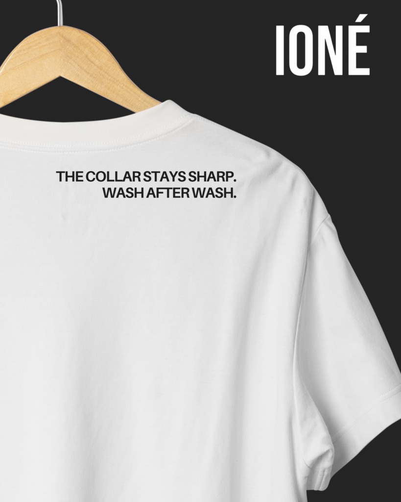 IONÉ Atelier redefines the modern T shirt through precision, fabric integrity, and uncompromising craftsmanship. Every piece is designed to hold its shape, its colour, and its presence, wear after wear.